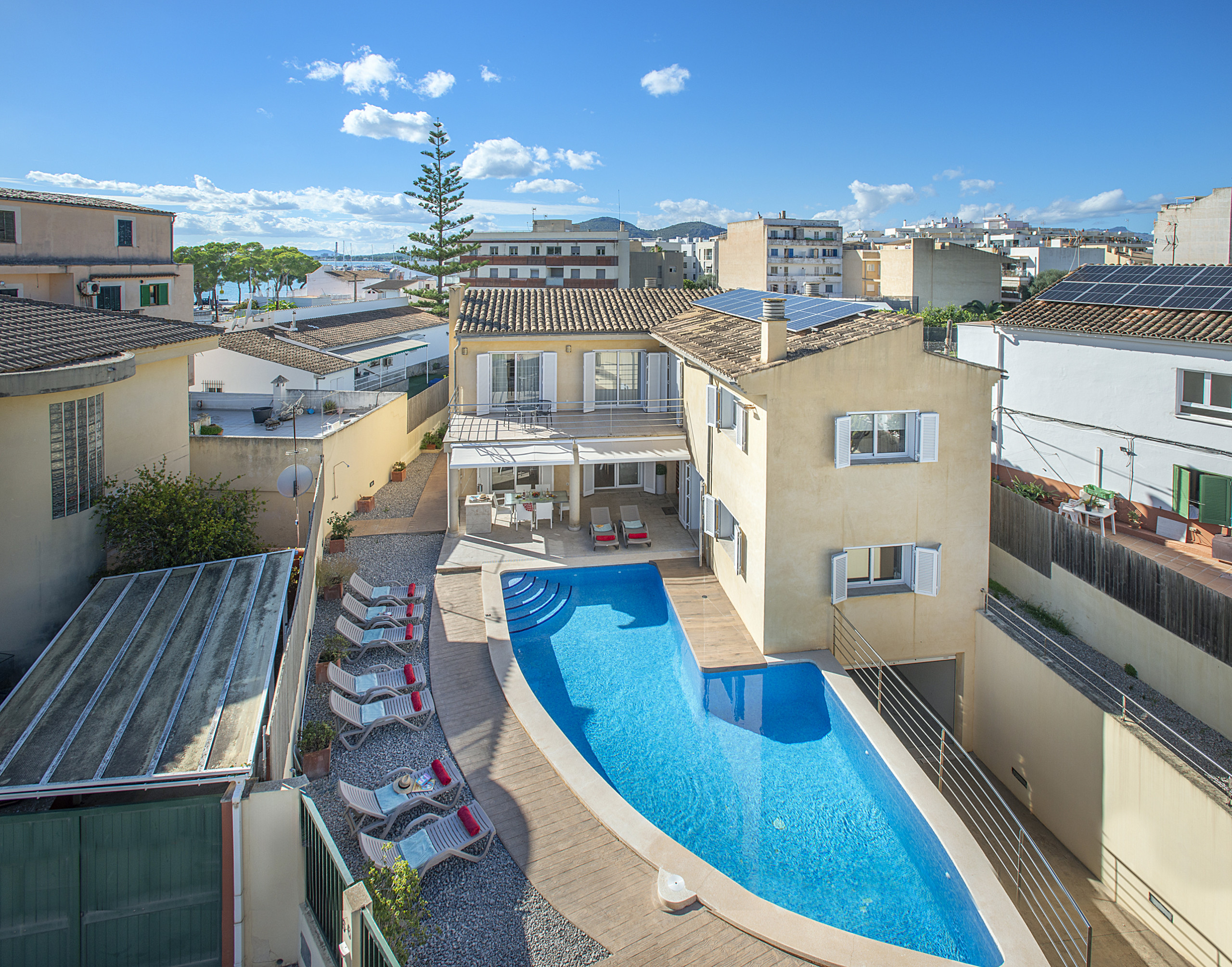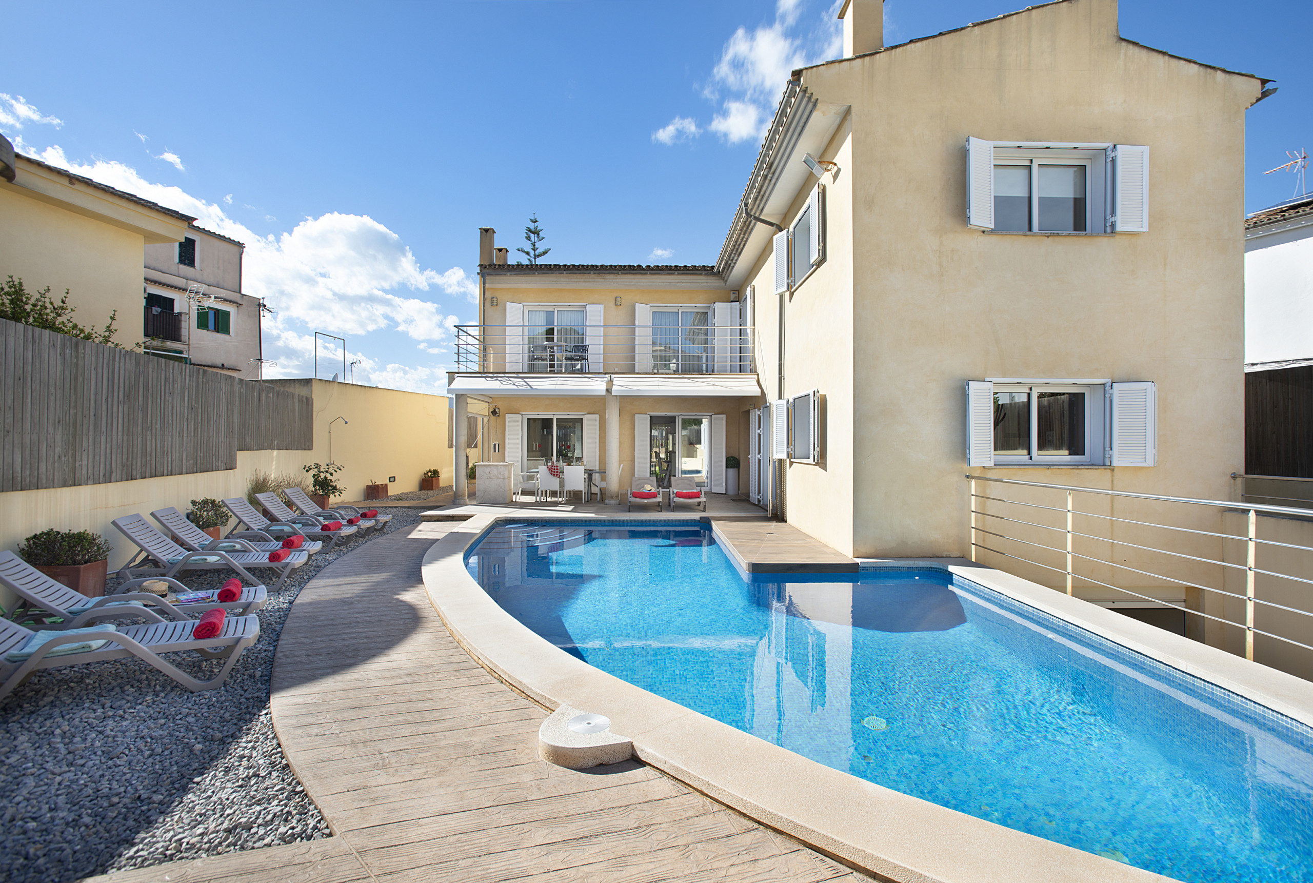 Im Außenbereich bietet die Villa Can Gaya zwei Bereiche mit Tischen und Stühlen: einen am Pool, perfekt für sonnige Frühstücke, und einen weiteren auf der Rückseite, vom Wohnzimmer und der Küche aus zugänglich – ideal für Abendessen im Freien. Parken ist bequem vor dem Haus möglich, da die Garage als Spiel- und Waschraum genutzt wird. Das Anwesen verfügt über keinen Grill.