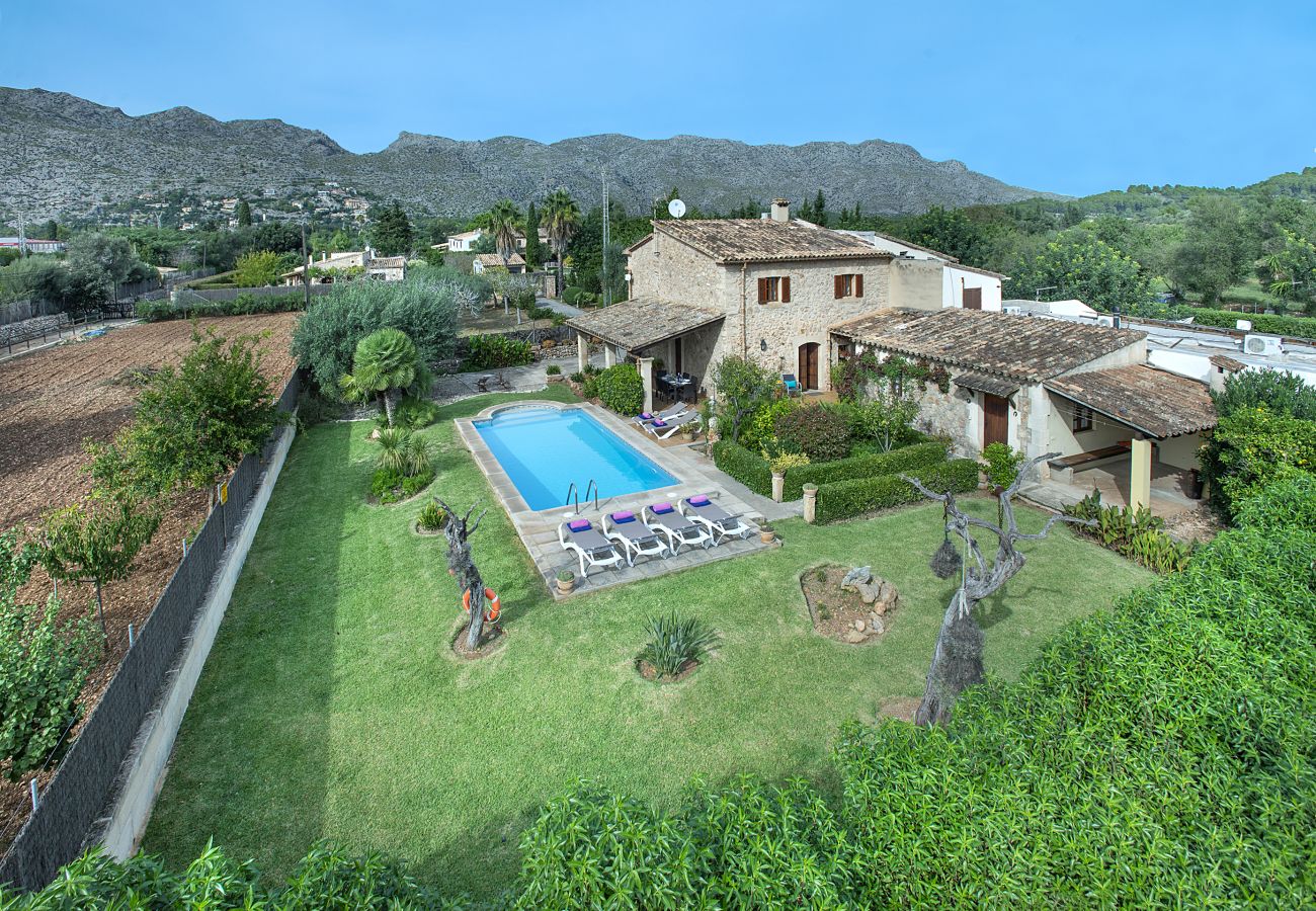 Der Außenbereich macht diese Finca zu einem einzigartigen Ort, hier können Sie im schönen Pool schwimmen oder sich sonnen. Die Finca Can Bandera verfügt über einen gepflegten Garten mit Rasen, Pflanzen und unglaublichem Bergblick, was ihm eine einzigartige Umgebung verleiht. Es gibt auch Liegestühle zum Ausruhen oder Lesen eines guten Buches und einen tragbaren Grill. Es gibt auch ein Badezimmer im Freien mit Dusche und Badewanne sowie eine Waschküche.