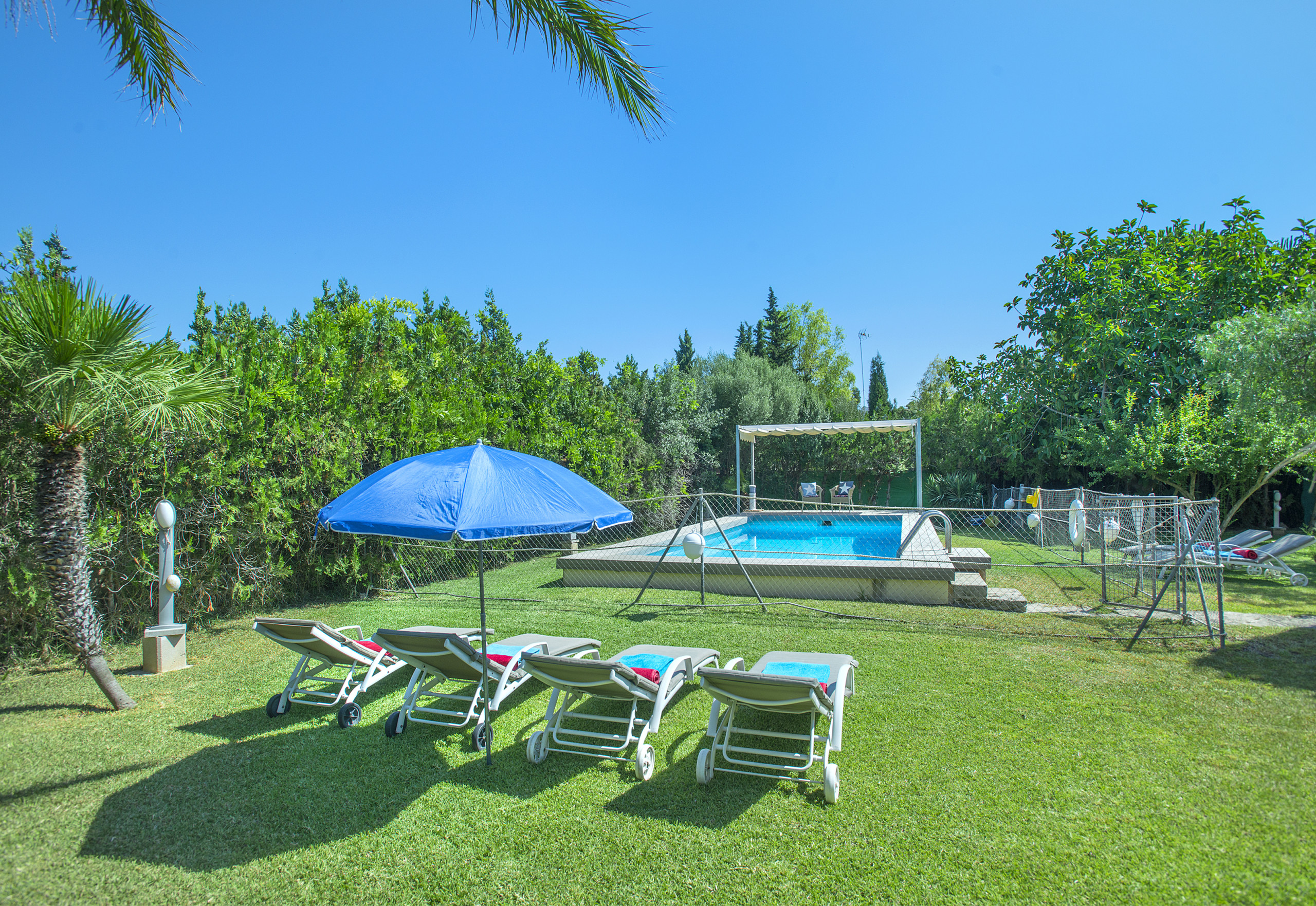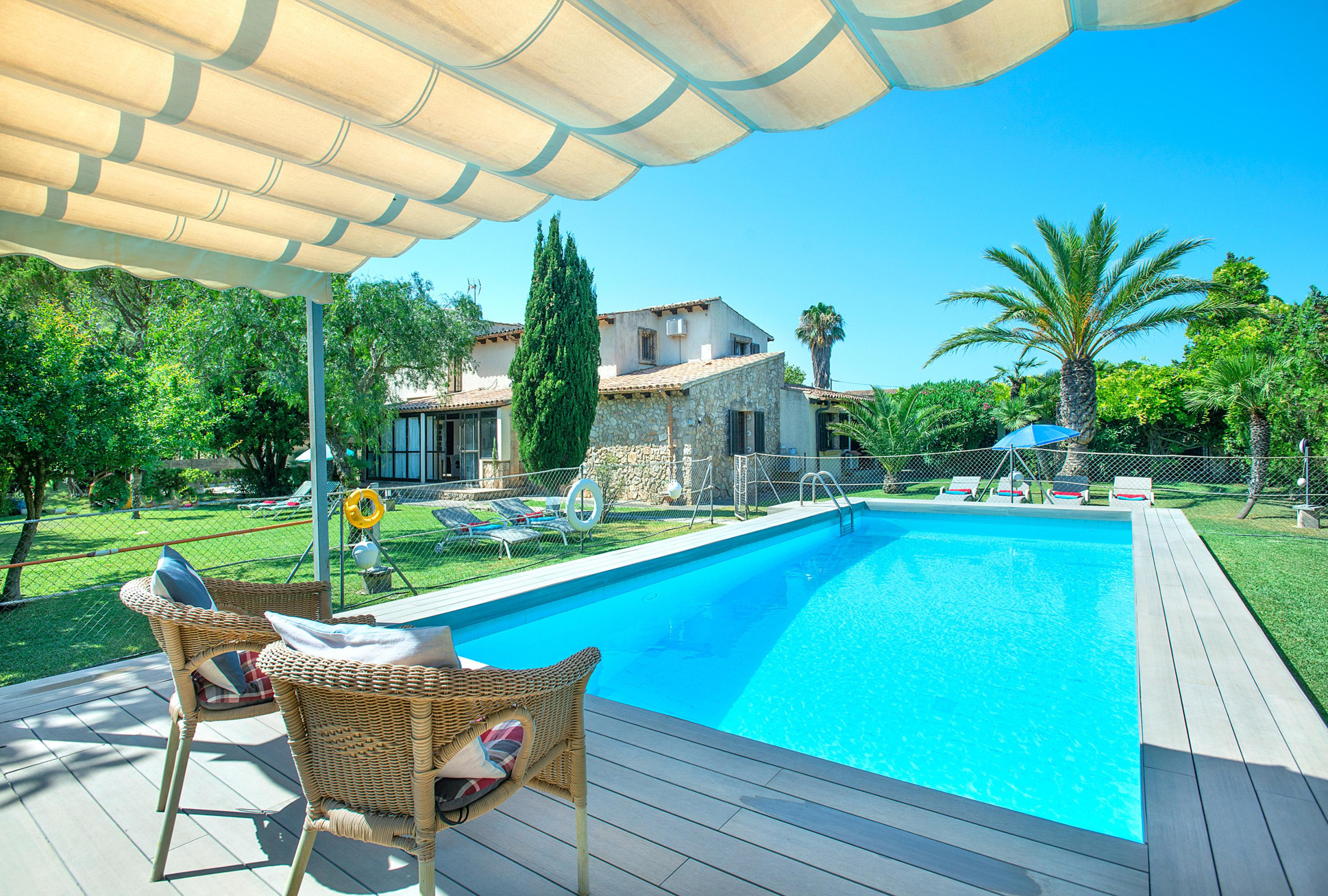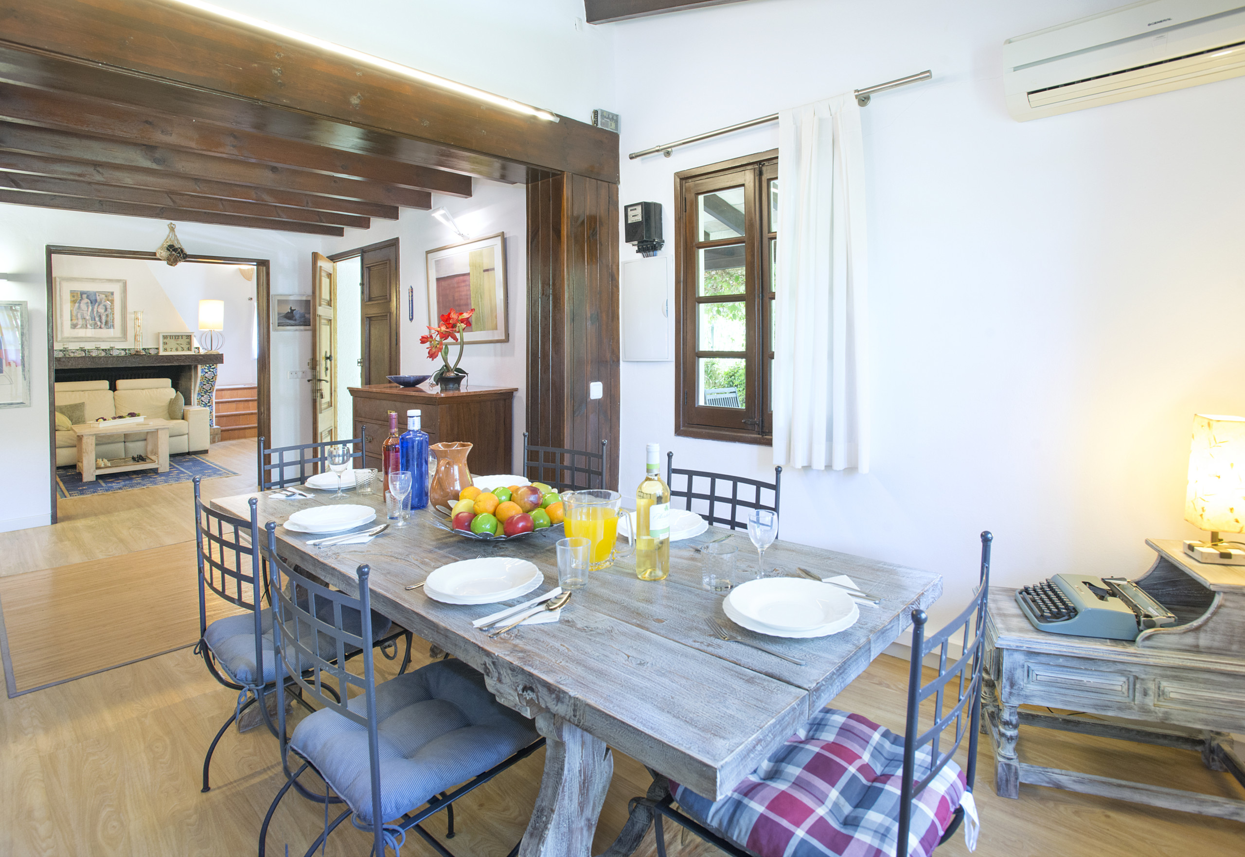 Im Außenbereich bietet Villa Francesc einen privaten Swimmingpool, umgeben von einem großzügigen Garten, ideal für Familien, da der Pool eingezäunt ist. Außerdem stehen ein Grill, Außenmöbel für Mahlzeiten im Freien sowie ein privater Parkplatz auf dem Grundstück zur Verfügung. Die ruhige Atmosphäre macht diese Villa zu einem idealen Ort für erholsame Ferien auf Mallorca.