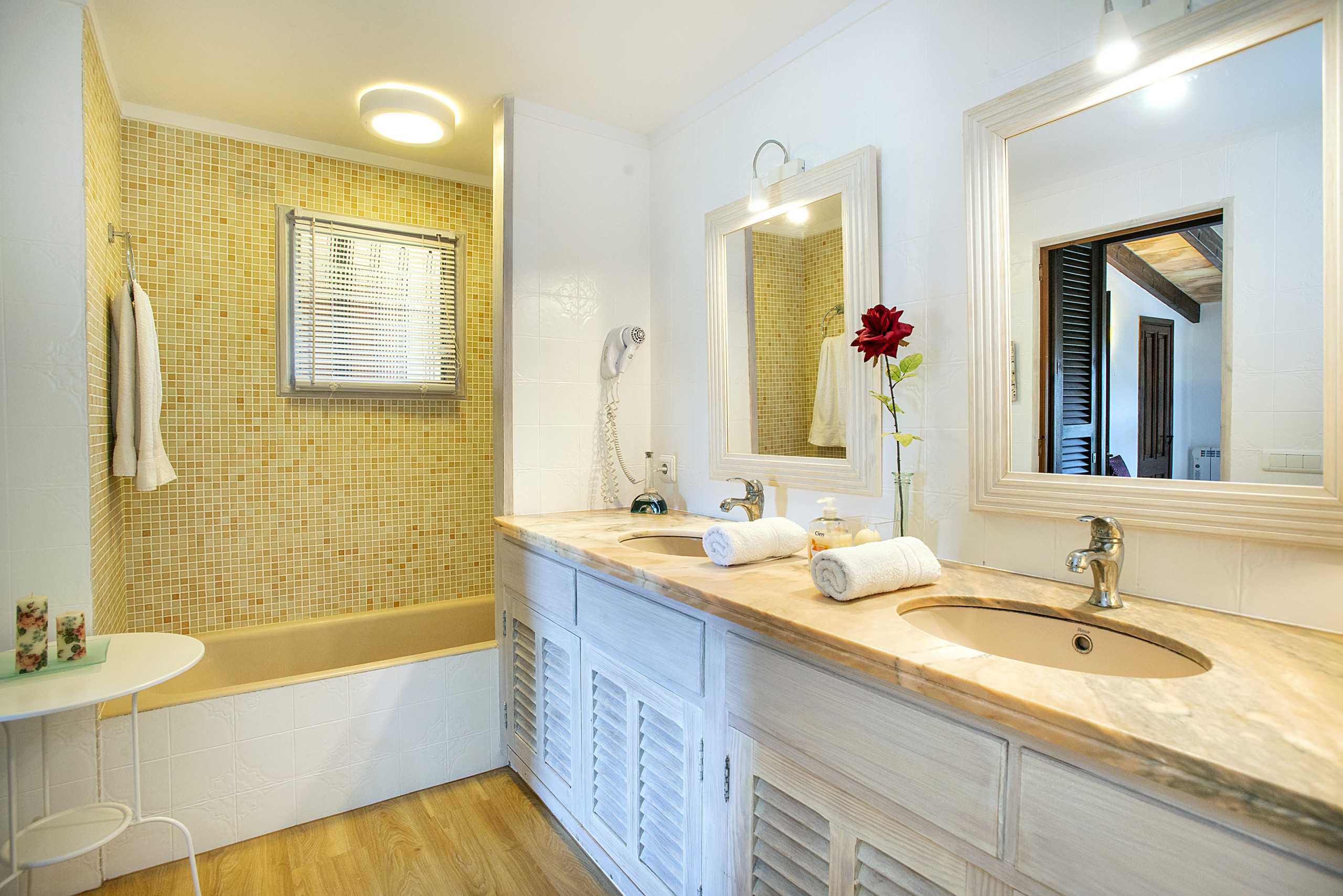 Villa Francesc bietet Platz für bis zu 8 Personen und erstreckt sich über zwei Etagen. Im Erdgeschoss befindet sich ein gemütlicher Wohn- und Essbereich, der auf Erholung ausgelegt ist, mit Smart TV und direktem Zugang zum Außenbereich. Die Küche ist vollständig ausgestattet und bietet alle Annehmlichkeiten, um bequem zu kochen. Von hier aus gelangt man auf eine überdachte Terrasse mit Zugang zum Garten- und Poolbereich. Ebenfalls im Erdgeschoss befindet sich ein Schlafzimmer mit zwei Einzelbetten sowie ein Badezimmer mit Dusche.