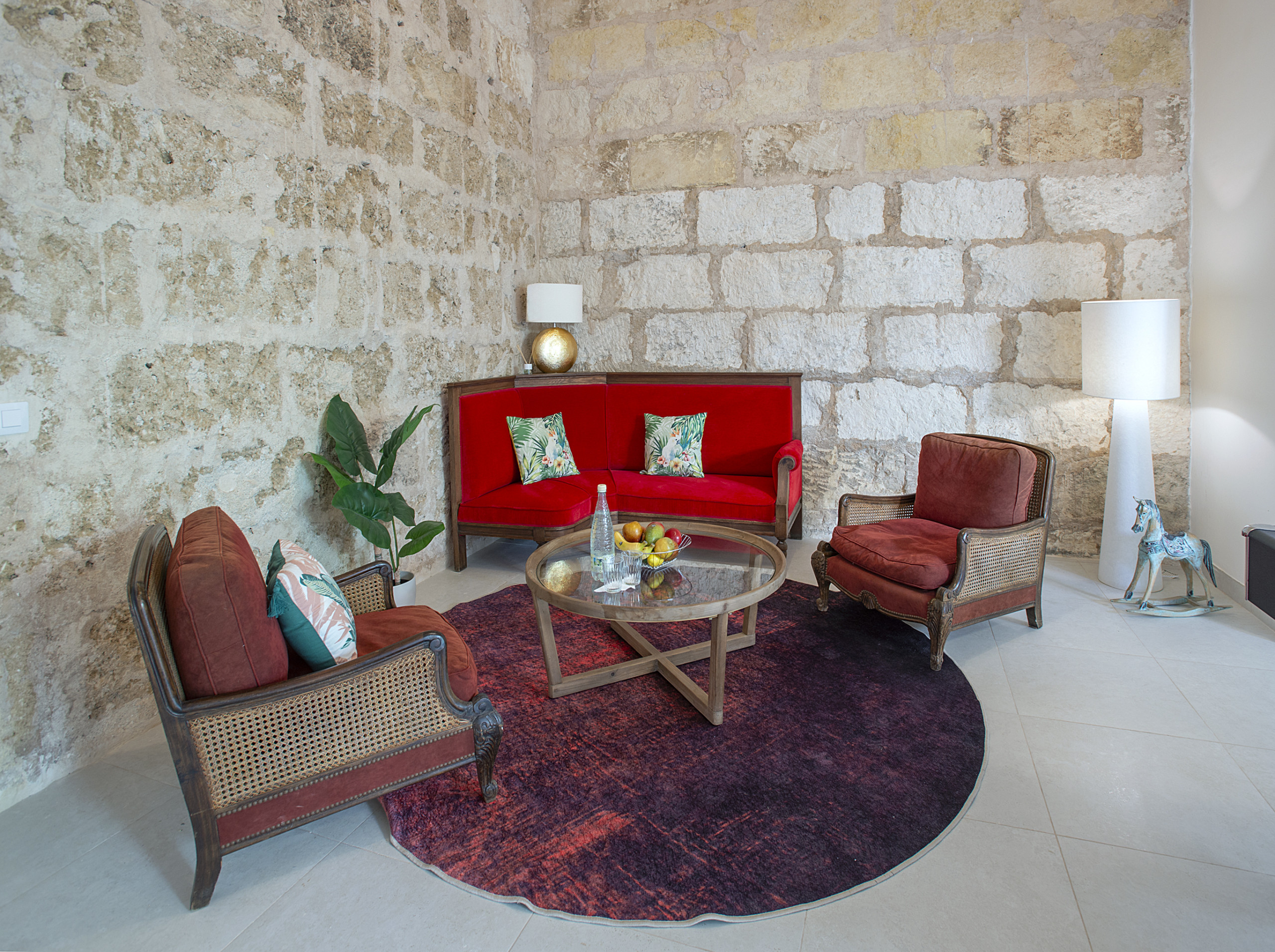 A la derecha, se sitúa una casa moderna con mobiliario cómodo en tonos claros. Aquí se encuentra una espaciosa habitación doble con techos altos de vigas de madera, decorada con cuadros modernos, que dispone de un baño privado. Otra habitación doble, con dos camas individuales grandes, también cuenta con baño privado. Ambas habitaciones tienen acceso directo a la piscina.