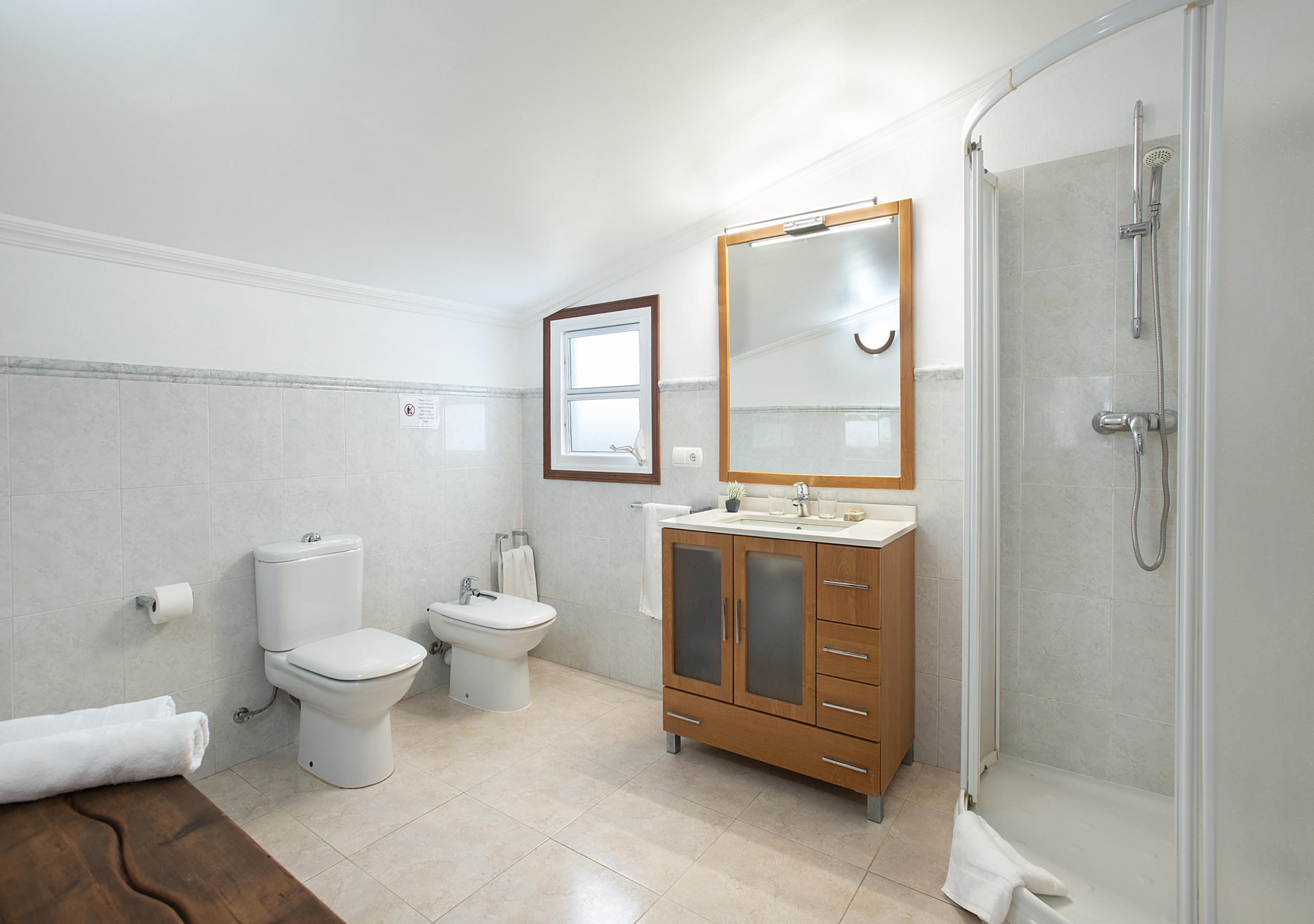 En entrant dans la maison, vous accédez directement au salon-salle à manger. Sur la droite se trouve la cuisine entièrement équipée. Au rez-de-chaussée, il y a une chambre avec deux lits simples ainsi qu’une salle de bain complète avec baignoire. Un escalier mène au premier étage où se trouve le reste de l’espace nuit : une chambre double avec salle de bain attenante avec baignoire et accès direct à la terrasse, une chambre double, une autre avec deux lits simples, ainsi que deux salles de bain supplémentaires avec douche.